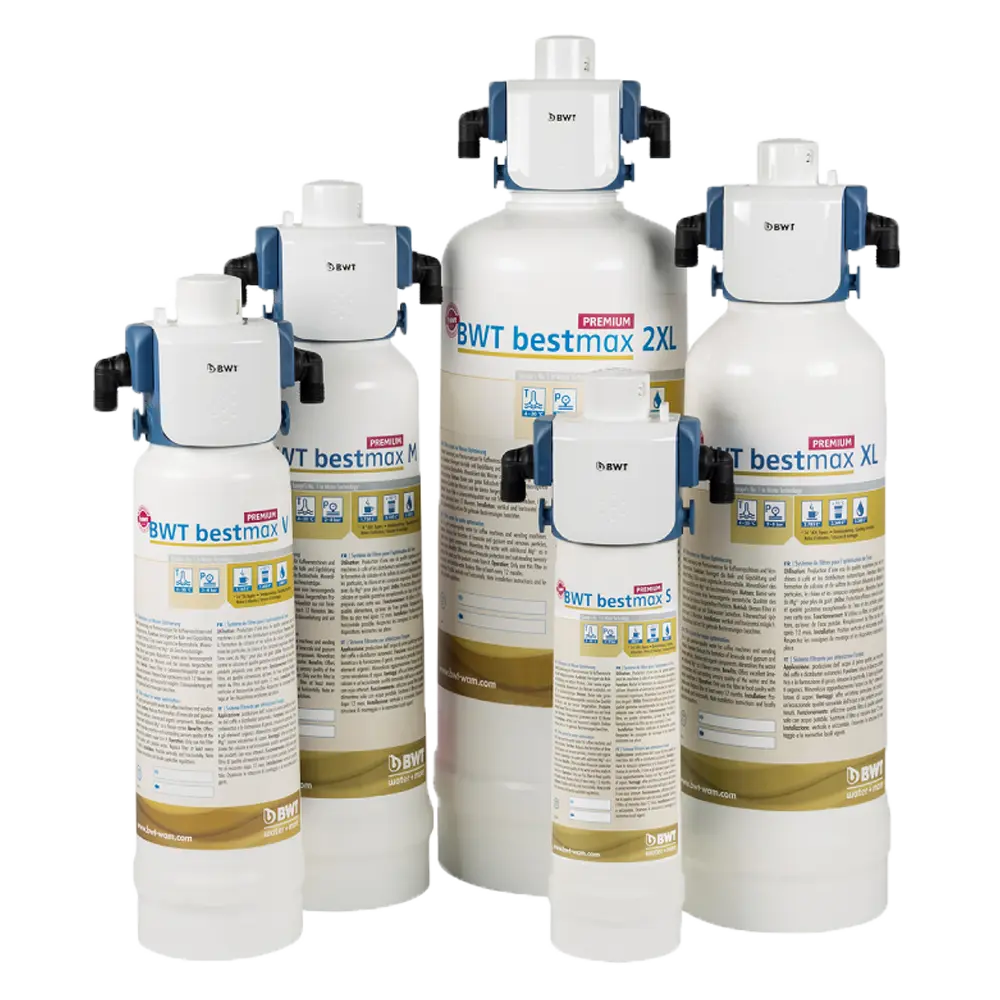 BWT bestmax PREMIUM to zaawansowany system filtracji stworzony specjalnie do poprawy jakości wody używanej do przygotowywania gorących napojów w ekspresach do kawy i automatach sprzedażowych. Ten innowacyjny filtr eliminuje niepożądane składniki wody, takie jak wapń, cząsteczki stałe, chlor i związki organiczne, gwarantując najwyższą jakość napojów.